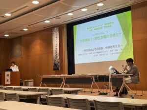 吉田看護師は、シンポジウム1「フットウエア 地域でのフットウェアの理解と普及を考える」の座長を担当、西村看護師は、シンポジウム2「日本静脈学会・日本フットケア・足病医学会 合同シンポジウム」で「下肢静脈うっ滞性潰瘍の治療とケア」を講演しました。