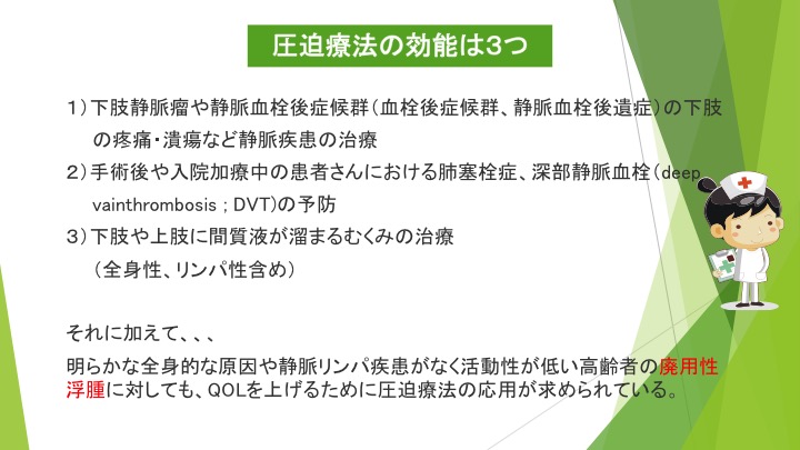 静脈性下肢潰瘍は、慢性静脈不全症の最重症型であり、難治で再発が多く社会的・経済的な負担が大きいことで知られている。2020年4月からは慢性静脈不全症による静脈性下肢潰瘍に対する静脈圧迫処置が保険適応となり、圧迫装具も療養費として保険から補助がでるようになった。