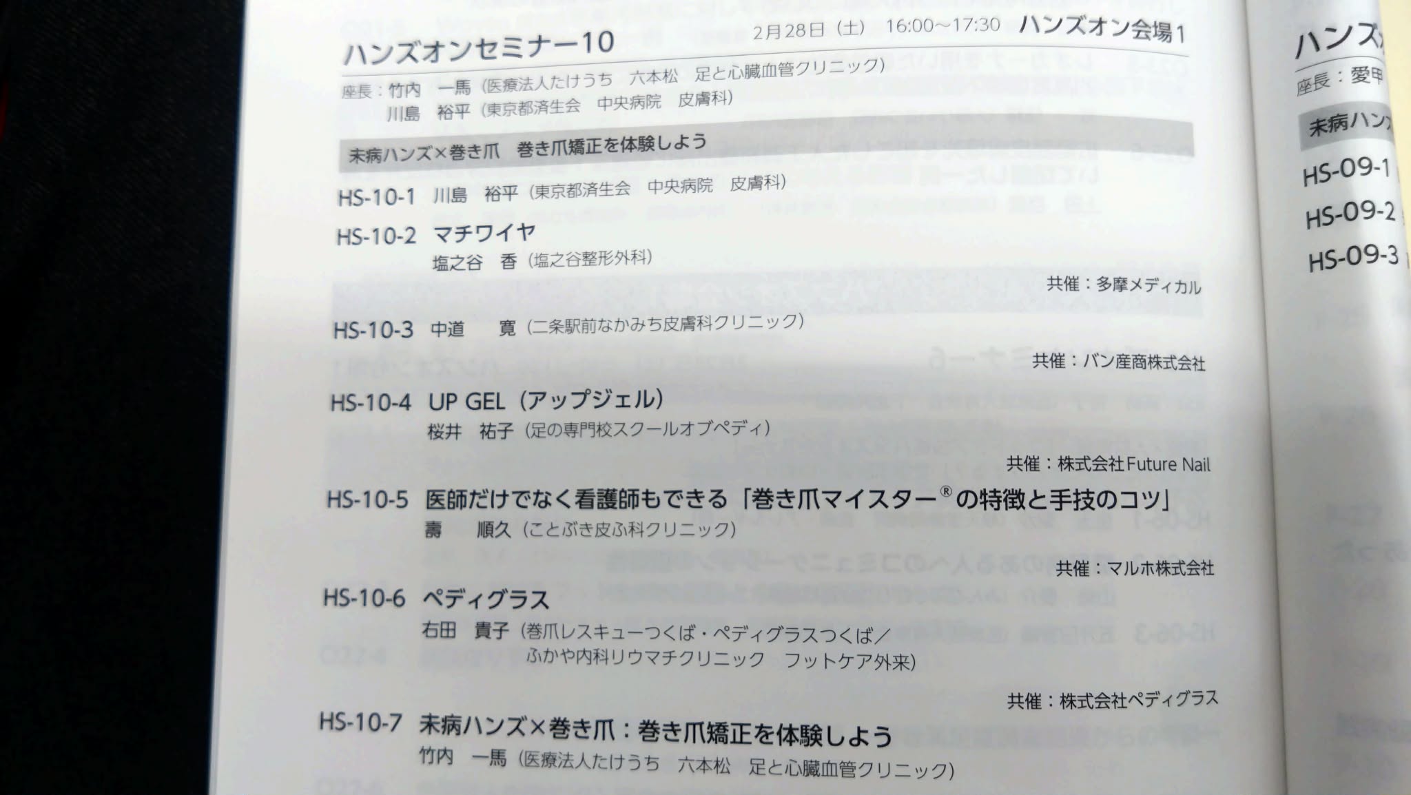 第6回日本フットケア・足病医学会年次学術集会にて昨年に引き続き、「巻き爪治療ライブデモンストレーション」の座長を担当させていただきました。